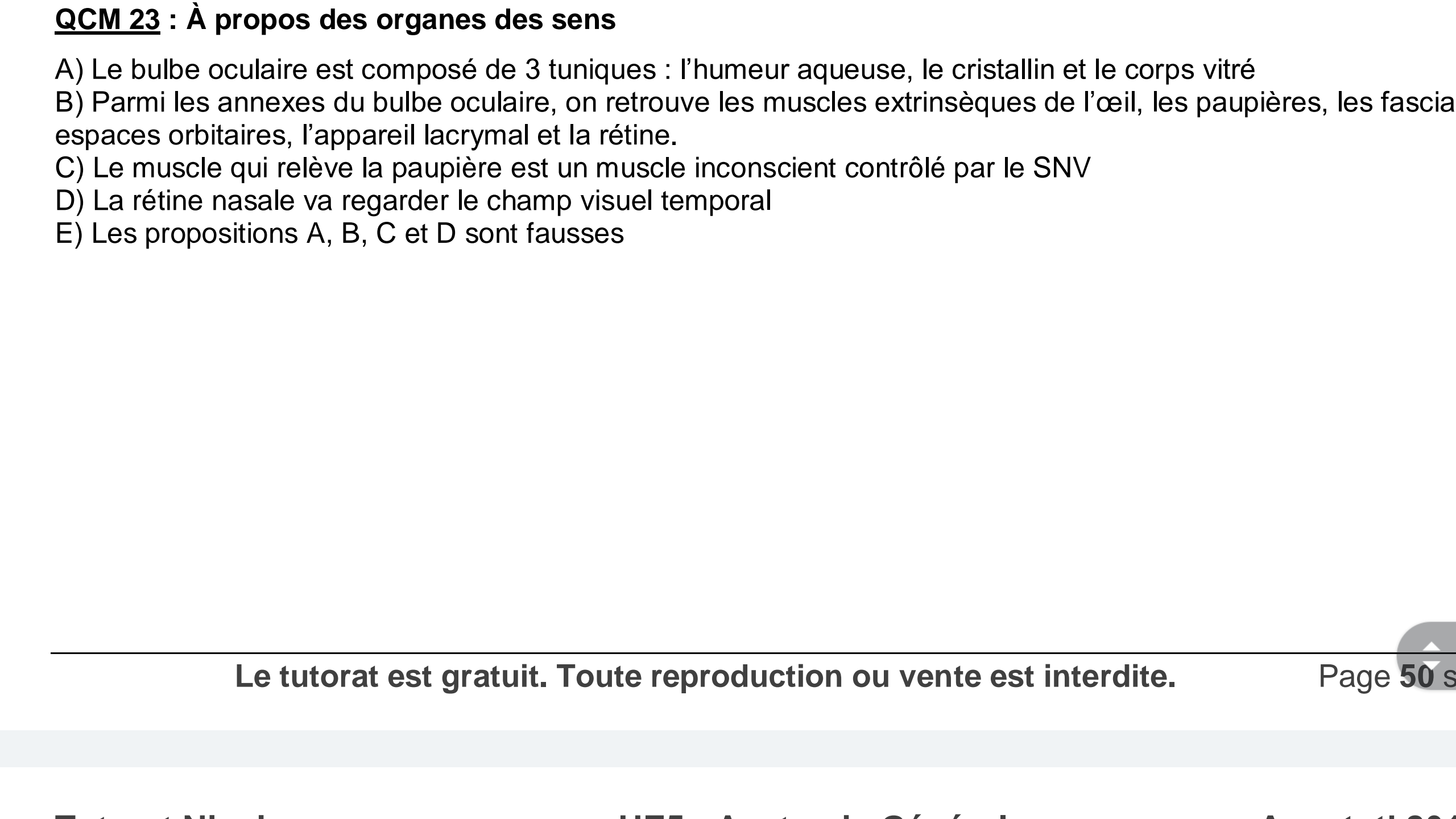 Re: Annatut 2017 organes des sens qcm 23