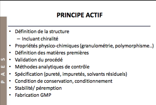Pour les items A et B, ce qui me gène c'est qu'on parle du médicament, alors que je pensais que dans le dossier analytique on parlait juste du principe actif, contrairement au dossier galénique où là on parle du médicament final... D'ailleurs dans le diapo du prof c'est écrit "principe actif"