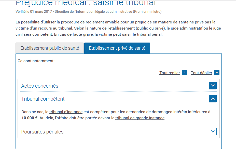 Sauf que le tribunal de grande instance est saisi dans le cadre des juridictions civiles non ? Du coup je ne comprends pas pourquoi il est saisi en cas de litige avec un établissement privé qui pour moi devrait être saisi par le tribunal administratif comme l'hôpital ? :sidefrown: