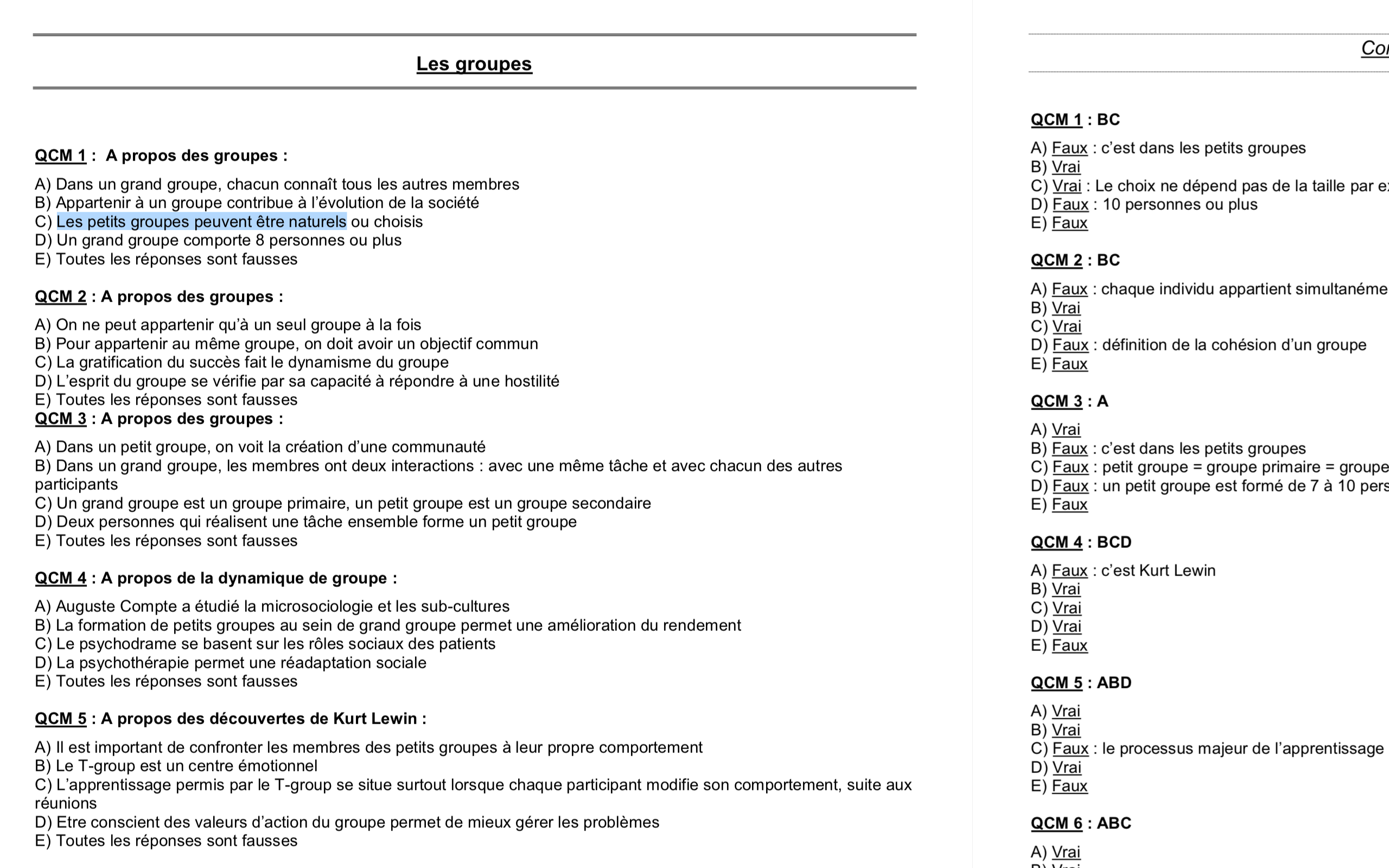 En envoyant le qcm au prof, j'avais compté l'item faux, en justifiant avec "ce sont dans les grands groupes que l’on distingue ces deux types de groupes", et le prof a corrigé en mettant cette version...