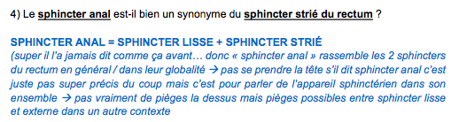 Maintenant 2P nomme le sphincter strié = le sphincter anal car il se trouve au niveau de la partie basse du rectum et dépasse au niveau de la zone de l'anus mais c'est bien un seul et même sphincter pas deux différents!