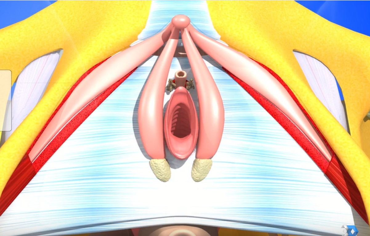 Sur cette image si tu regarde bien , on arrive à voir deux petits orifices à droite et à gauche au niveau postérieur du vestibule du vagin qui correspondent aux orifices des glandes de Bartholin :