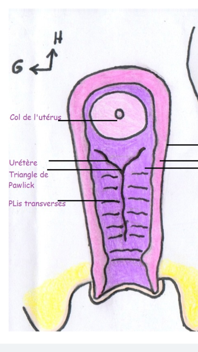 j'aurais juste une petite question , je pensais que les plis longitudinaux étaient sur la face antérieur du vagin mais sur la couche externe pour être le stigmate vaginale du trigone vésical , enfin je m'étais imaginais le truc comme ça , comme si il "s"emboité" avec le triangle de lieutard, mais du coup avec les QCM de ce soir si j'ai bien compris , les verticaux sont a l'intérieur du vagin , sur la paroie antérieur et postérieur ?