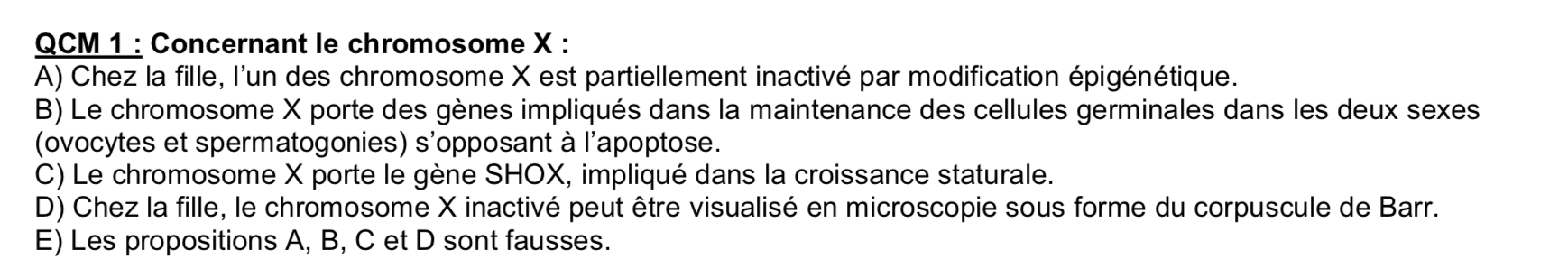 L'item B du qcm joint me pose problème et les tutrices n'étaient visiblement pas sure du tout pour la correction officieuse, j'aurais eu tendance à compter faux en imaginant que le prof fasse référence à AZF pour les gars, et vu qu'AZF est bras court Y ce serait faux.. Vous en pensez quoi ?