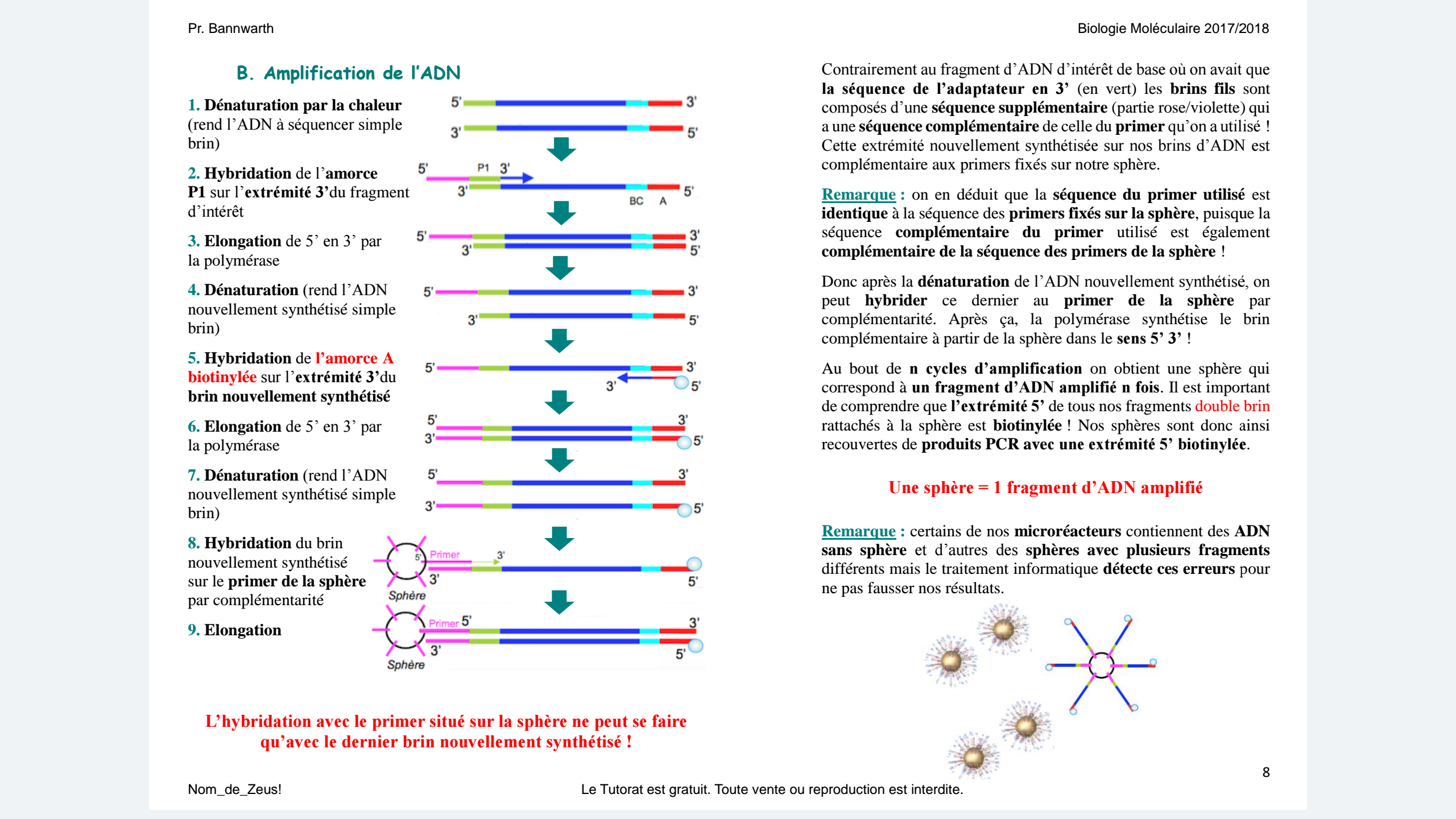 Bon je vais pas te refaire tout le cours, retiens qu' on a besoin de sphères parce que le séquençage se fait dans les puits d'une puce