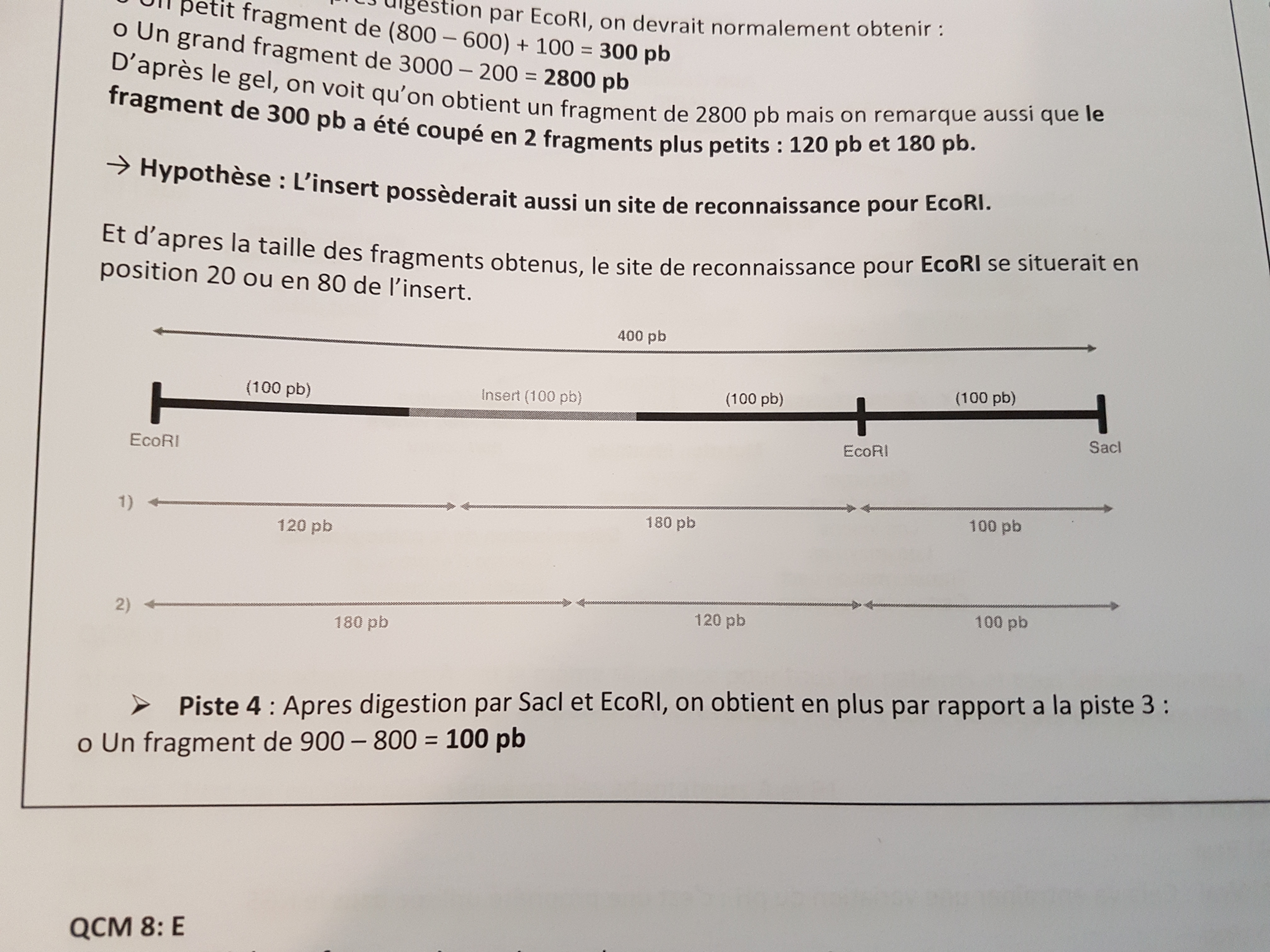 • Un fragment théorique de (800 – 600) + 100 = 300 pb qui a encore été mystérieusement coupé en deux fragments plus petits de