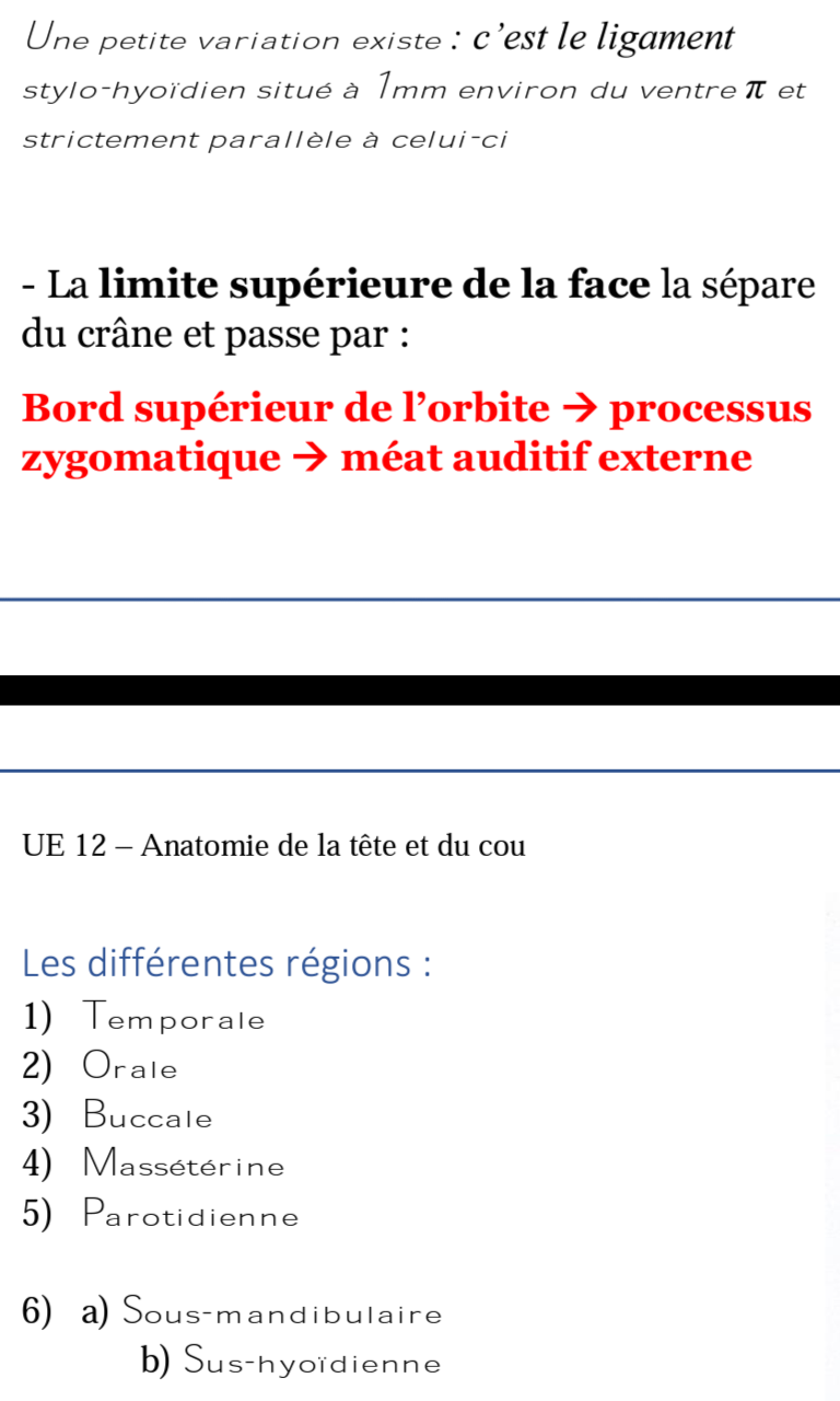 Ensuite il est vrai que LA LIMITE SUPERIEURE DE LA FACE est une limite qui passe par le bord sup de l'orbite. C'est une limite anatomique pour se repérer, ce n'est pas tranché au couteau.