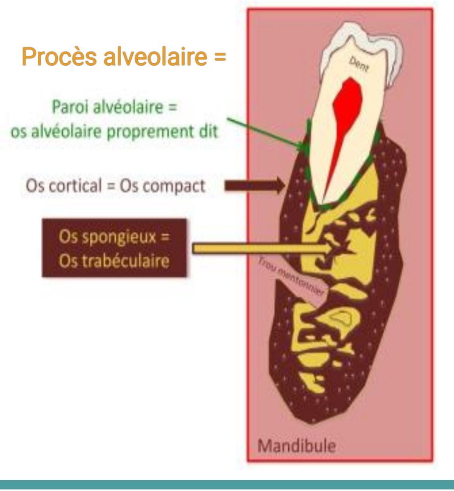 Proces alvéolaire = os cortical + os spongieux + os alvéolaire