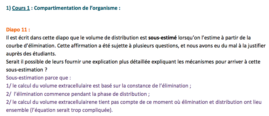 Je me suis aussi bien interrogé sur cette notion en P1, j'ai pas de réponse à te donner avec certitude à part que le prof dit chaque année que le vd est systématiquement sous estimé lorsque le traceur est éliminé :) Donc tout ce que je vais dire sert juste à donner une explication mais la seule chose à retenir de tout ça et qui a une valeur pour le concours c'est que le vd est systématiquement sous estimé lorsque le traceur est éliminé régulièrement du volume de distribution.