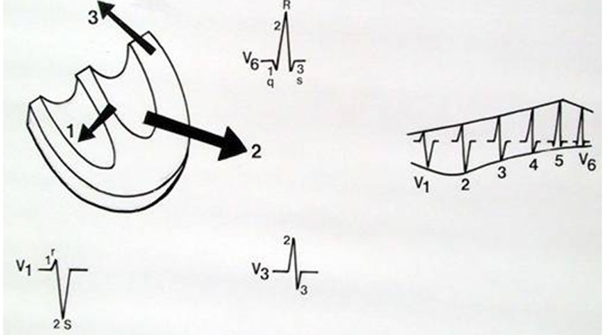 En revanche les cardiomyocytes les plus distaux du ventricule gauche se contractent un peu après ceux du ventricule droit mais la contraction des ventricules a déjà commencé au niveau des cardiomyocytes dépolarisés