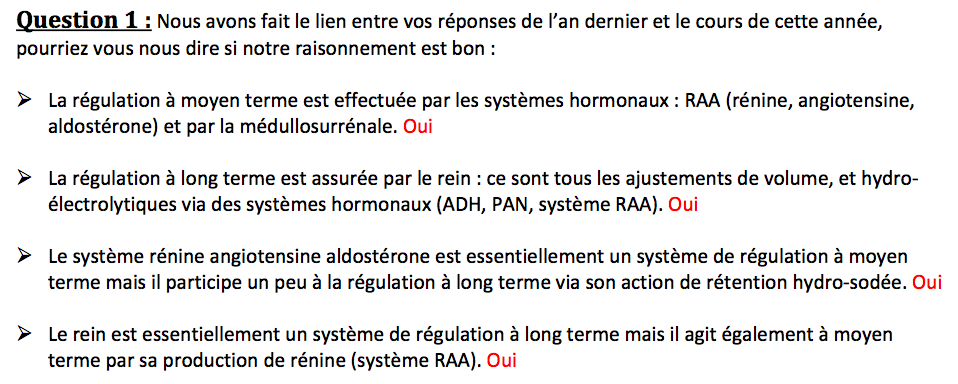-> Le rein est essentiellement un système de régulation à long terme mais il agit également à moyen terme par sa production de rénine (donc dans le système RAA).