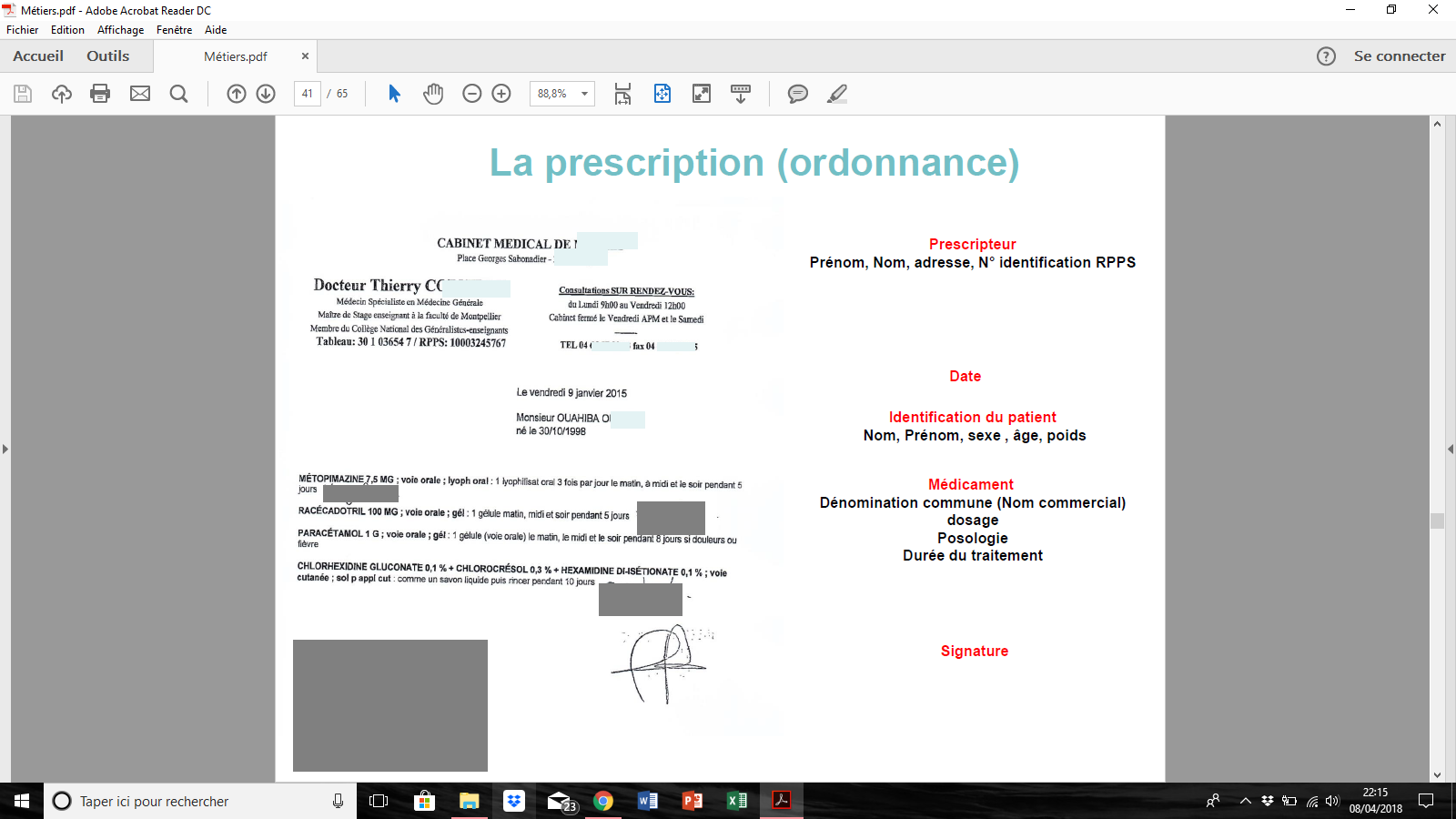 Salut :) j'aurais une question sur les principaux elements sur une ordonnance,