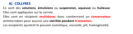 petite question sur le qcm 12 vous mettez : " A) Les collyres ne s’appliquent pas sur la cornée "