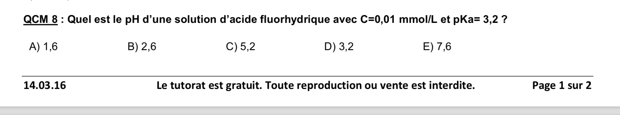 Salut, voila j'aimerais juste savoir comment on fait devant un qcm comme ca pour savoir si c'est un acide faible ou fort?