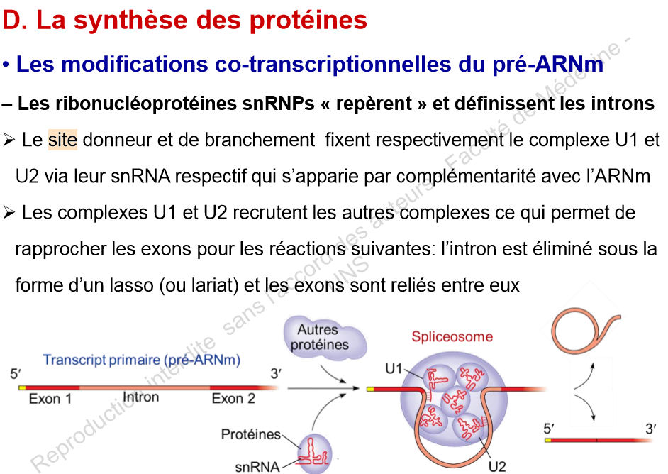 D'autre part dans votre diaporama du cours 1 vous parlez des séquences consensus, notamment du "site donneur et de branchement qui fixent respectivement le complexe U1 et U2 via leur snRNA respectif qui s’apparie par complémentarité avec l’ARNm"