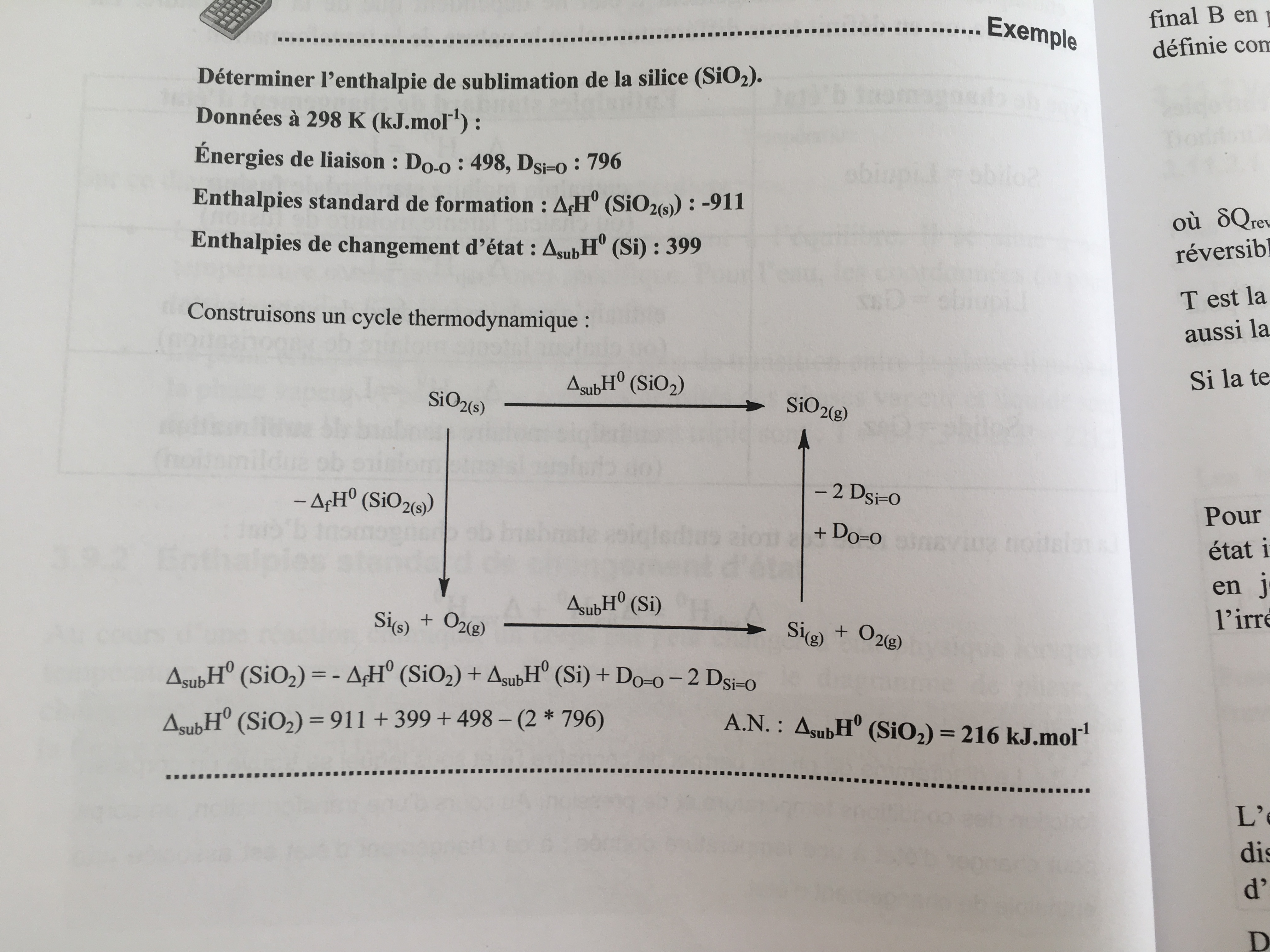 Par exemple, si on te donne l'énergie de liaison Si=O (donc dans le sens de la dissociation), elle sera différente de l'énergie de liaison O=O ou de l'enthalpie de formation de la silice, il faudra mettre un signe (-) devant quand tu formeras la liaison etc etc...