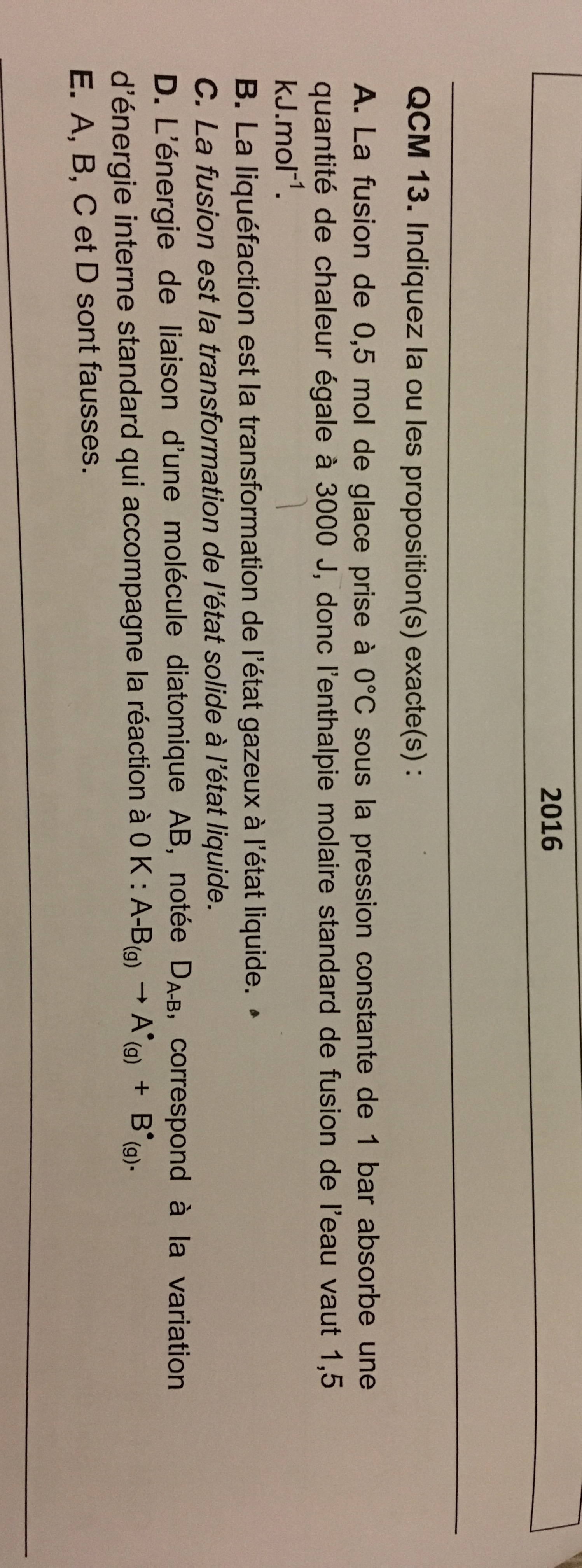 Du coup 6 kJ/mol donc l'item est faux :)