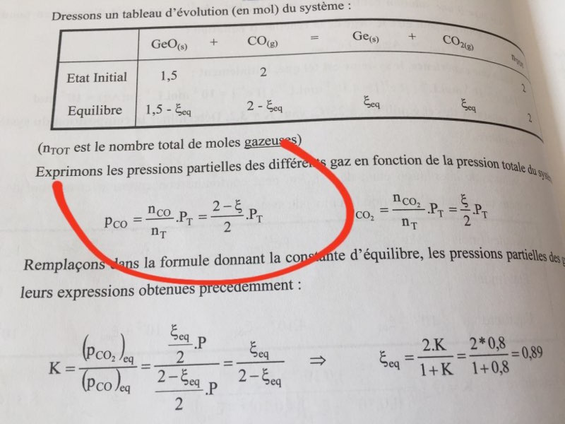 Pour ton deuxième message, lorsque tu fais un tableau d’avancement comme ça (on ne l’a pas fait au TD parce que le prof n’en a pas parlé l’année dernière, donc apprends ça avec réserve et attend que le prof le fasse en cours à mon avis ;) ) tu pars avec des réactifs au début de ta réaction, donc tu n’as pas encore forme de produits, donc au départ le nombre de mol de gaz total est de 2, et ensuite en fonction de l’avancement le nombre de LOL de gaz entre réactif et produit va varier mais PAS le nombre de mol total :)