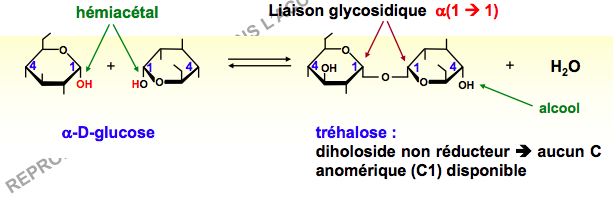 ne pouvaient plus exprimer leur pouvoir réducteur car cette liaison des carbones anomériques ne permet plus l'ouverture de leur cycle.