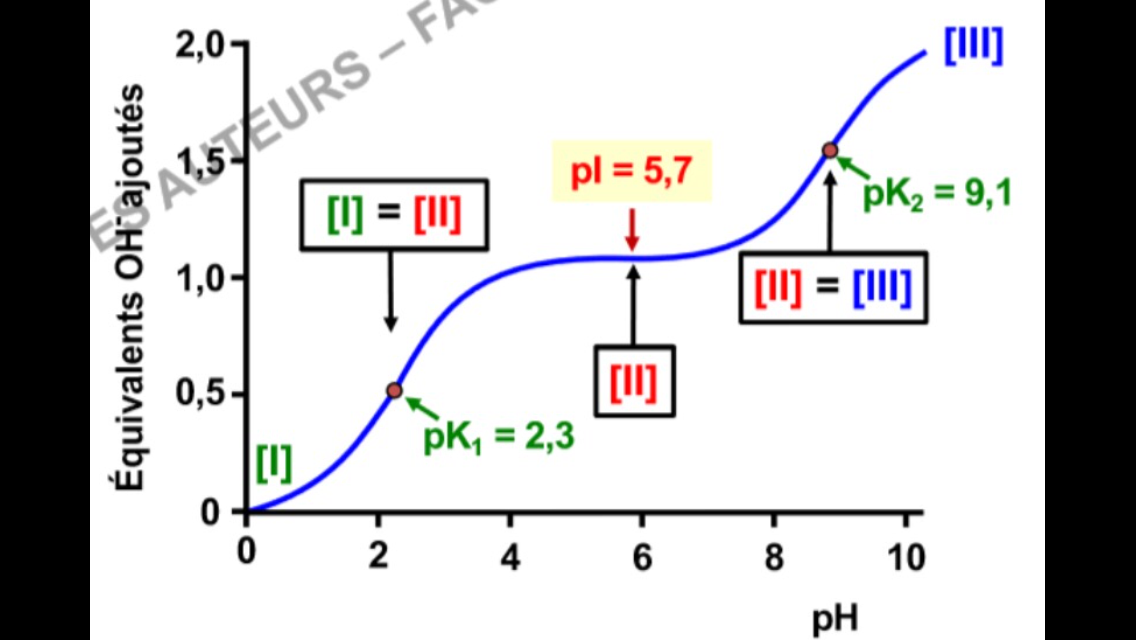 Le plateau entre nos deux points d'inflexion correspond lui au pHi, l'AA dans cette plage de pH sera donc sous sa forme Zwitterionique.