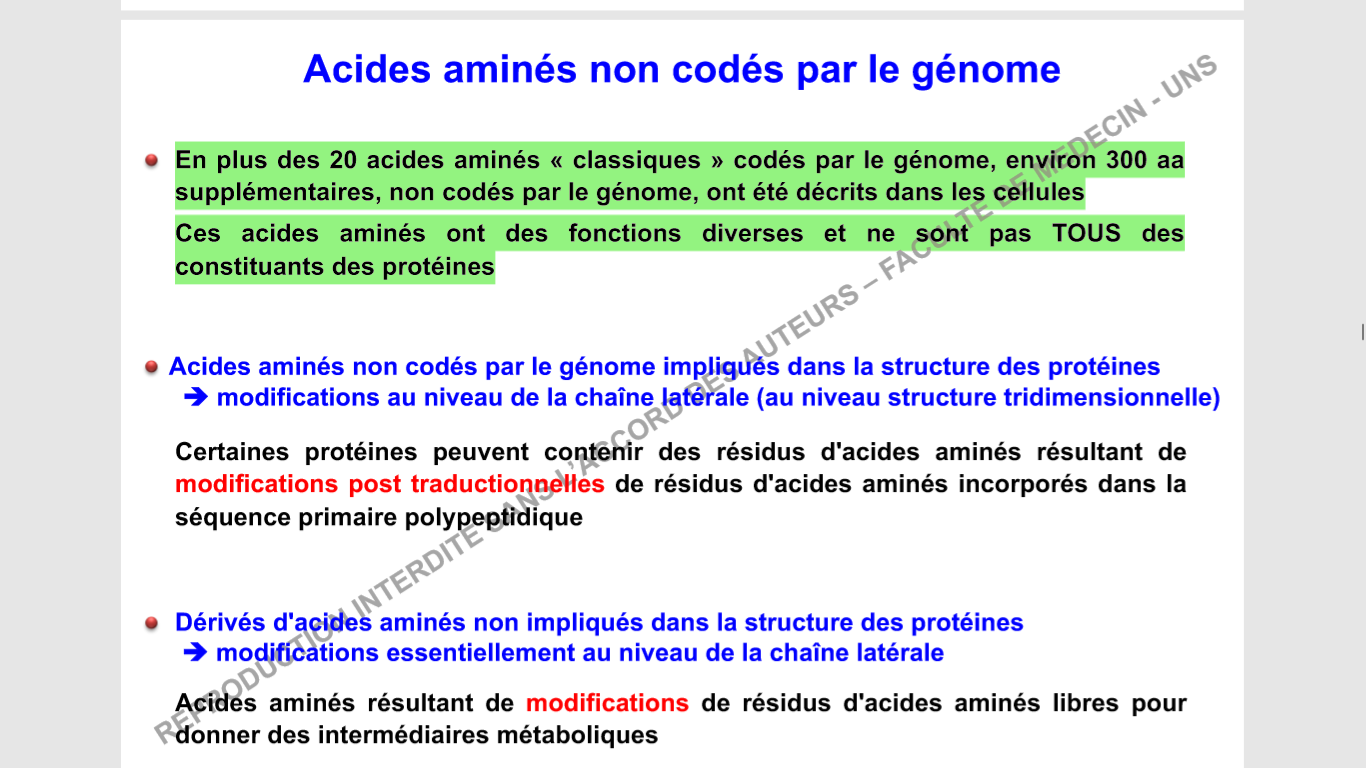 Parmi les 300AA seuls ceux incorporés dans les protéines sont issus de modifications post-traductionnelles non ? Alors que cet item suggère qu'ils le sont tous