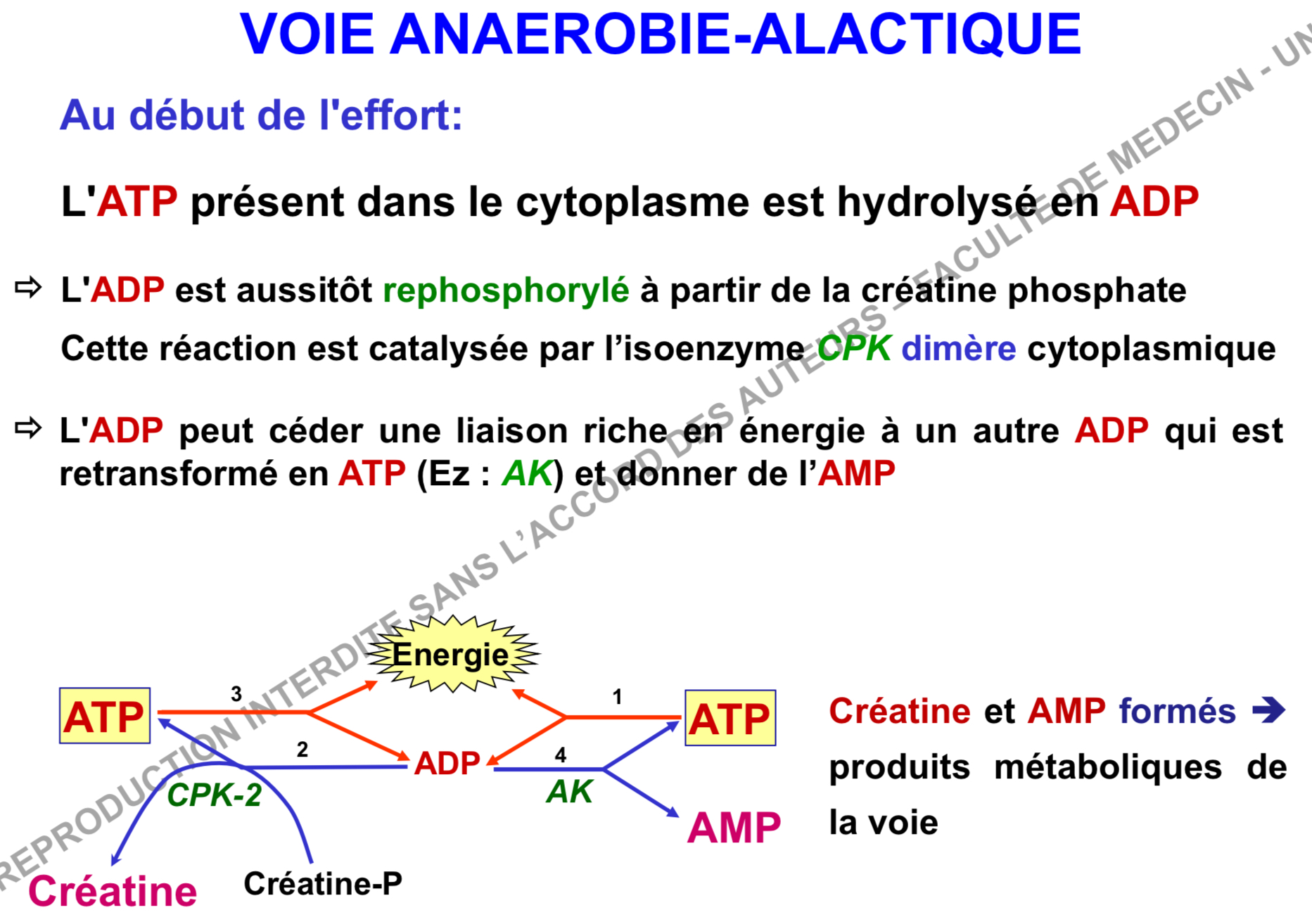 Donc la voie anaérobie alactique ne fait pas intervenir la CPK-8 lors de la production de l’énergie en elle même pendant l’effort. L’enzyme permet seulement de reformer les stock de Créatine Phosphate de la cellule après l’effort ! :glasses-nerdy: