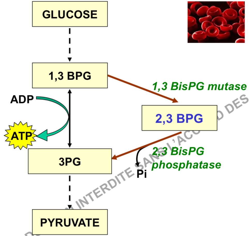 Ce 2,3-bisP GLYCÉRATE est un effecteur allostérique négatif de l’hémoglobine.