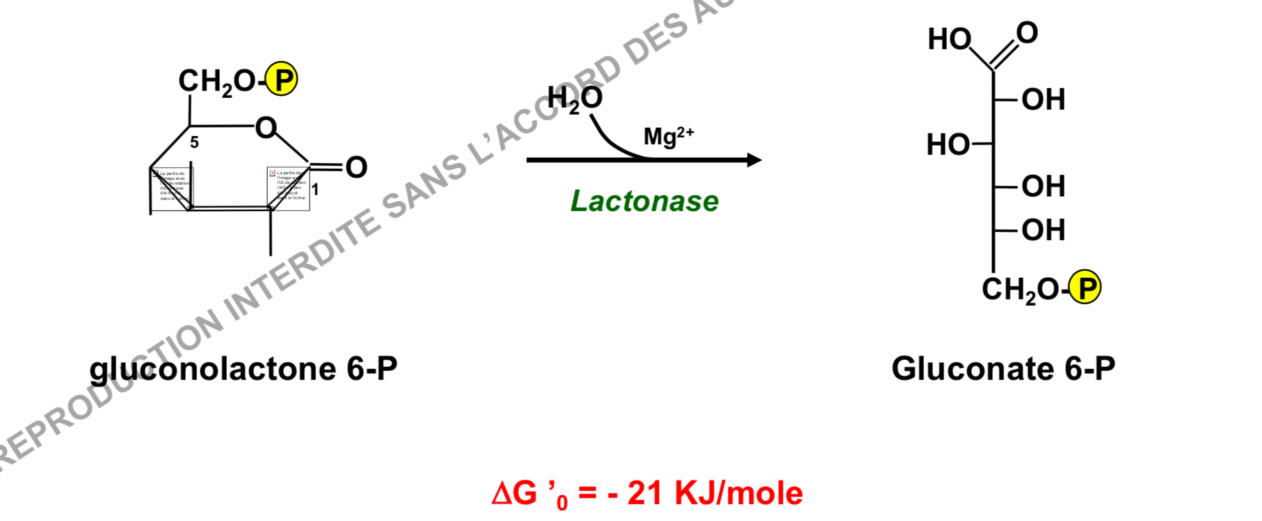 2) HYDROLYSE du Gluconolactone 6-P en Gluconate 6-P (ce n’est pas une oxydation)