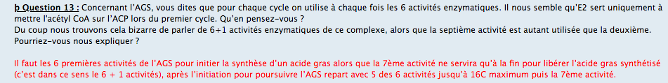 De même, je ne comprends pas pourquoi on ne peut pas dire que l'AGS = 5 activités enzymatiques + E2 (qui n'agit qu'au début) + thioesterase