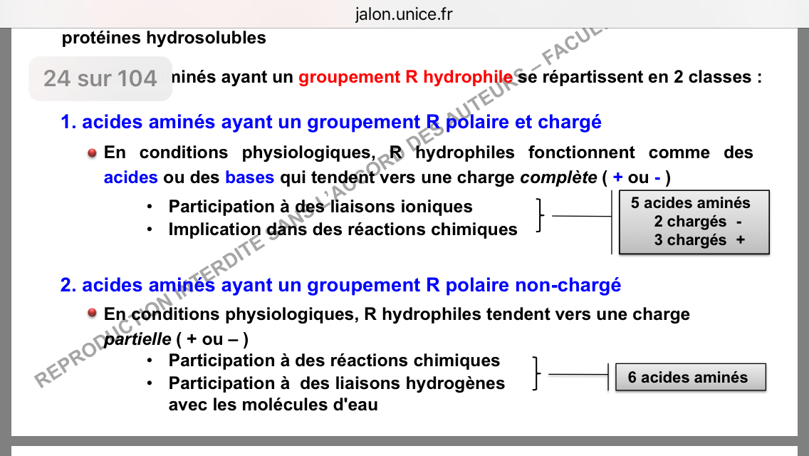 Pour moi l’item est faux car le tableau de la diapo 25 et 28 du prof précise bien que c’est un aa polaire mais NON CHARGé et pas comme écrit dans l’item partiellement chargé !