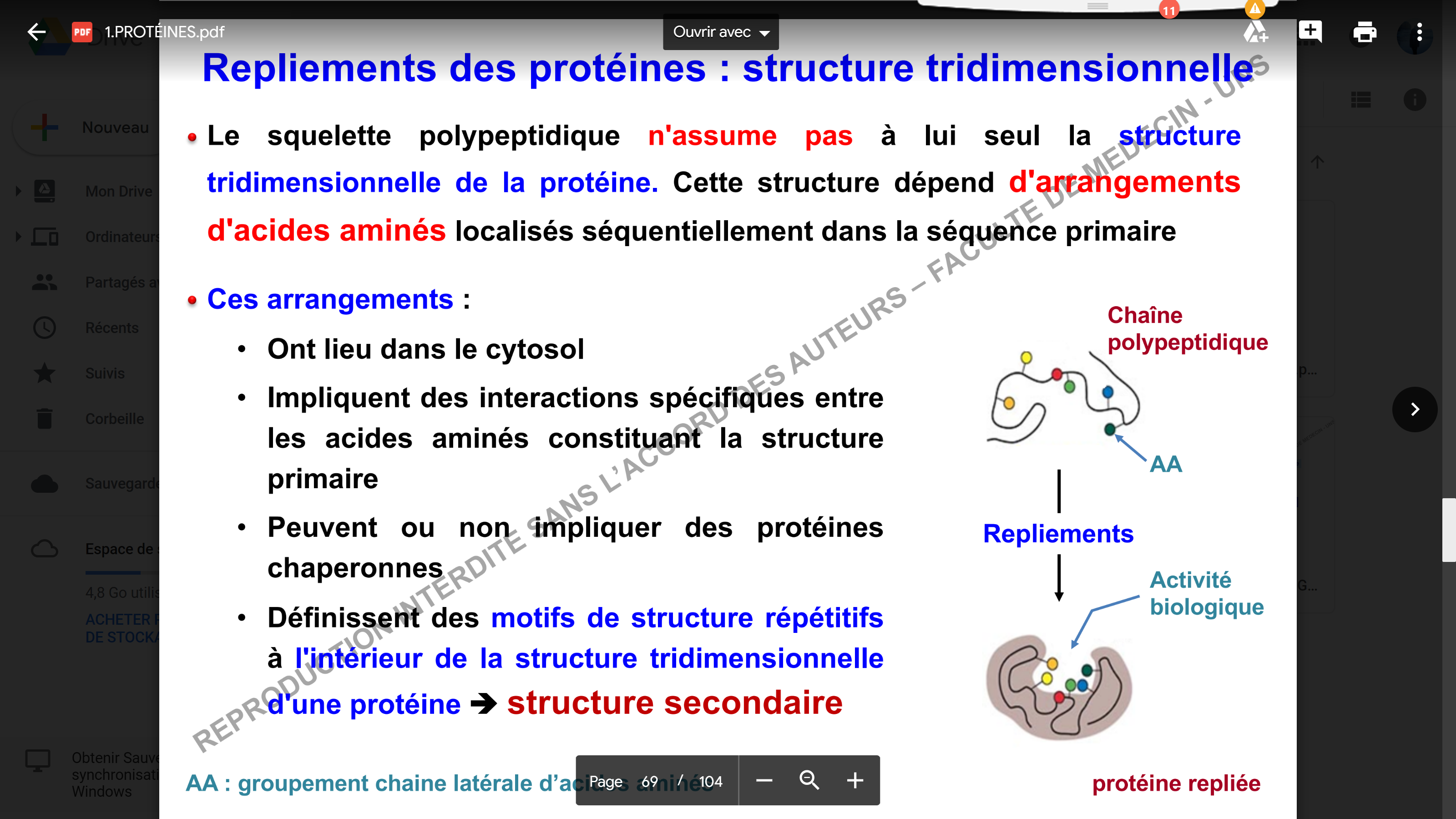 - sur la diapo 70 il précise que les deux motifs sont les hélices Alpha et les feuillets Beta