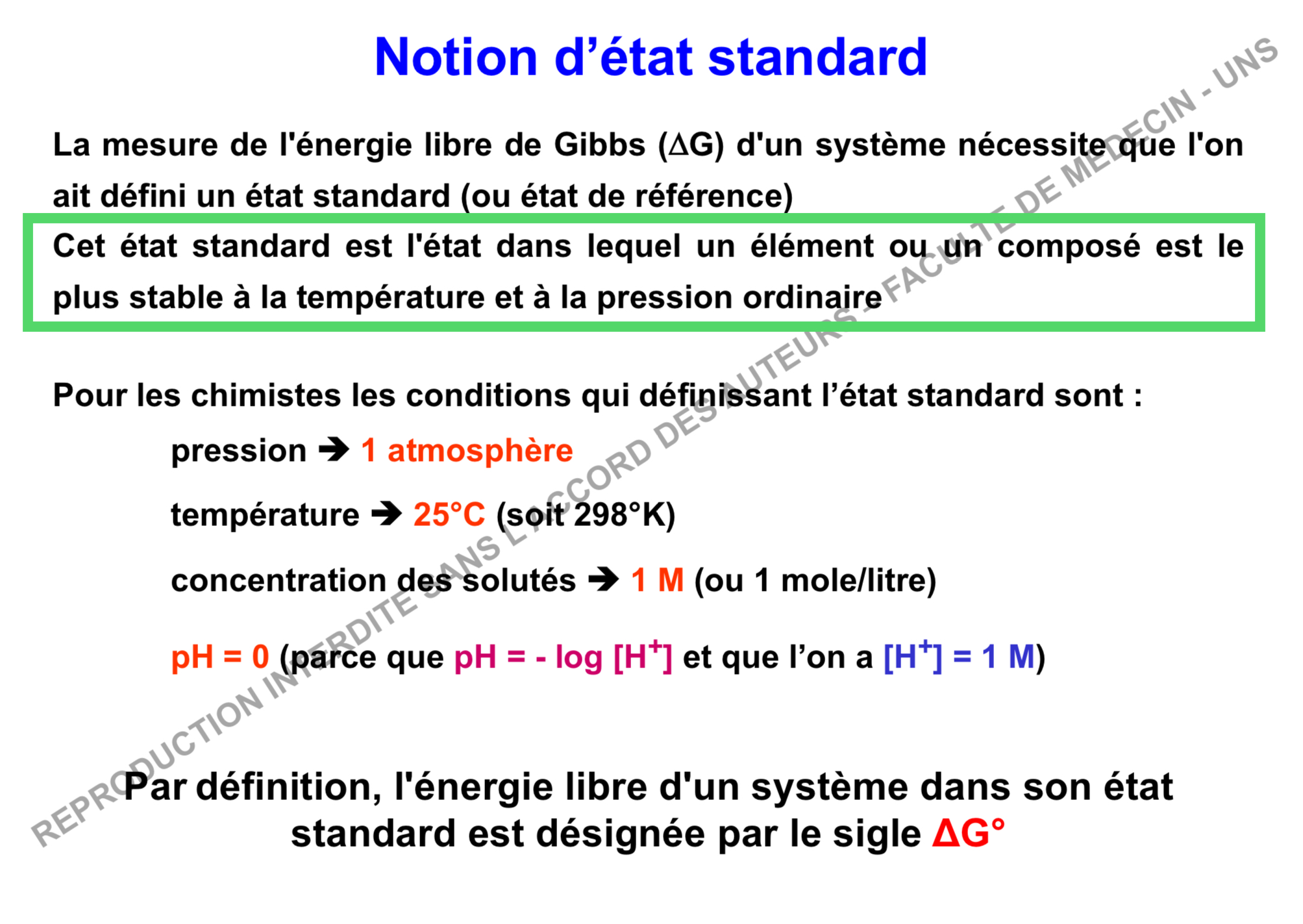 Cette phrase est sortie telle quelle du diapo du prof : on parle d’état standard ou d’état de référence (ou d’état standard de référence aussi ahah)
