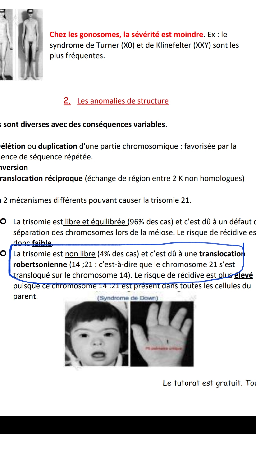 Je lisais votre superbe fiche sur la méiose et je me suis arrêté au niveau de la trisomie non libre due à la translocation robertsonienne 14;21.
