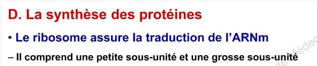Tout d'abord le ribosome désigne l’assemblage de la petite est grosse sous-unité donc dire que que le ribosome se fixe a l'ARNm est vrai