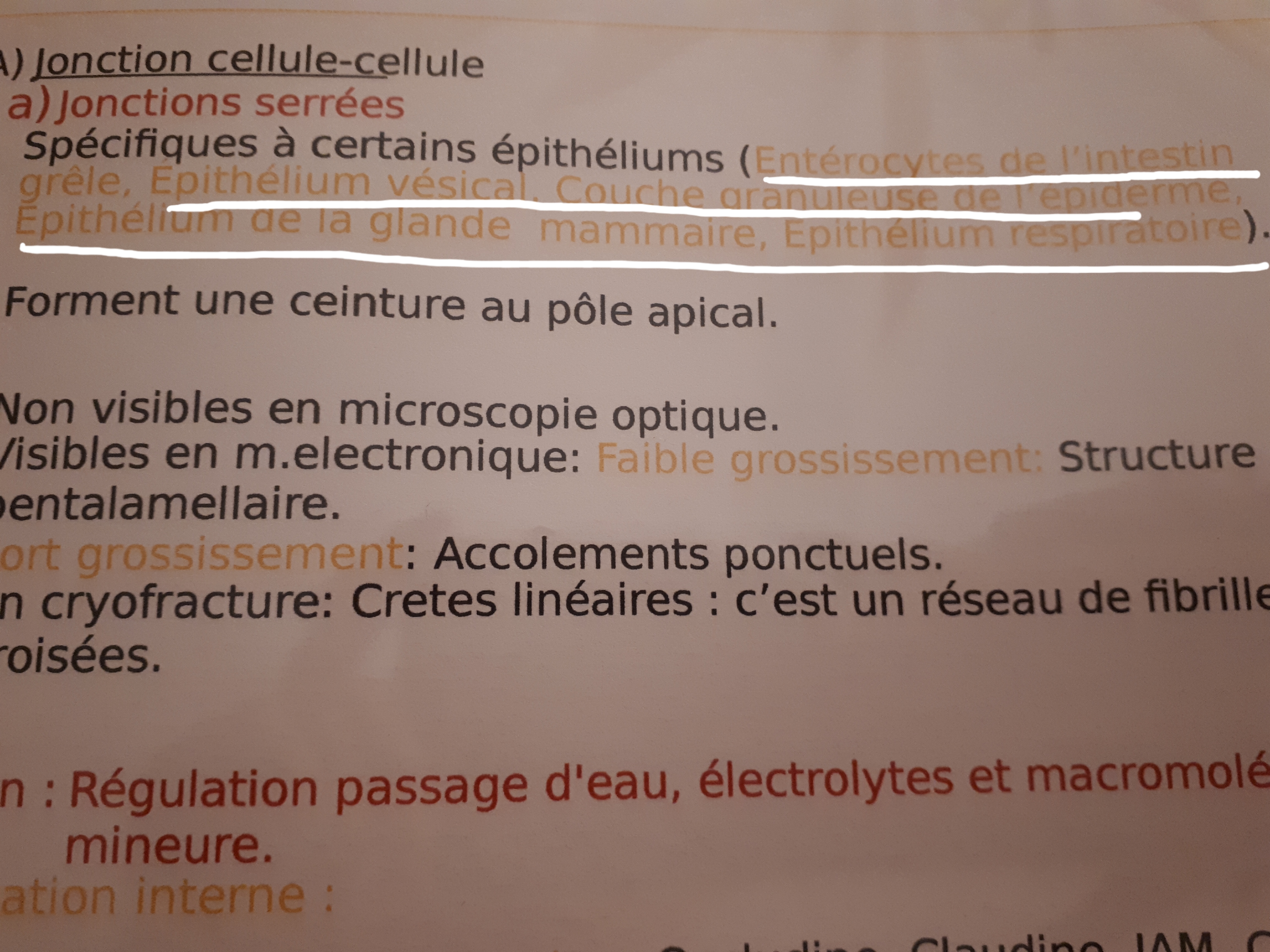 Je suis en train de relire le cours d'histologie et je ne me souviens plus si (voir photo) il faut apprendre ce qui est souligné en blanc... ?
