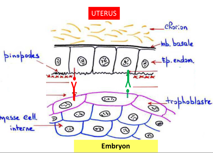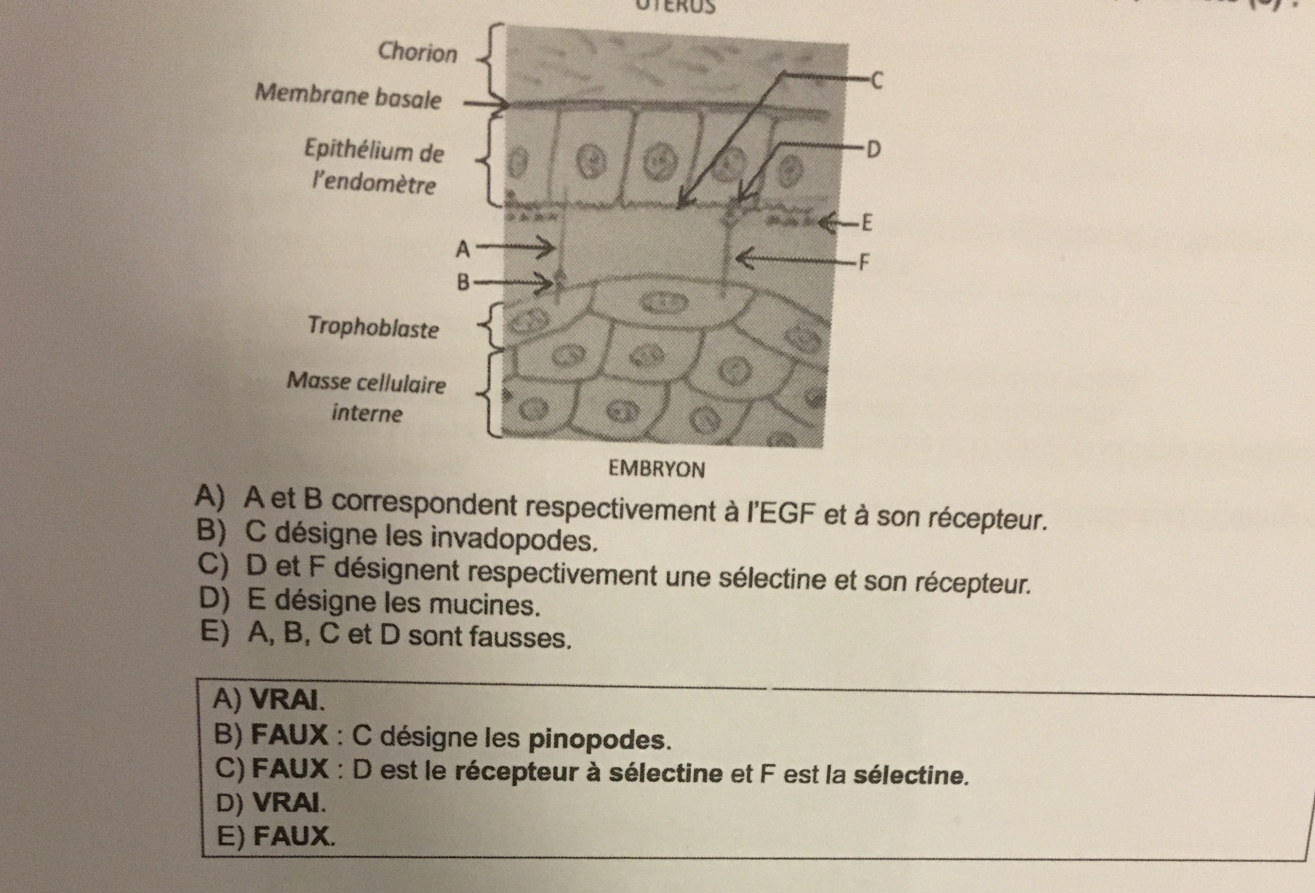 Il faut retenir que l’HBEGF est produit par l’endometre et son récepteur est sur le trophoB et que le trophoB présente les sélectines dont leur récepteurs sont sur l’endometre ;)