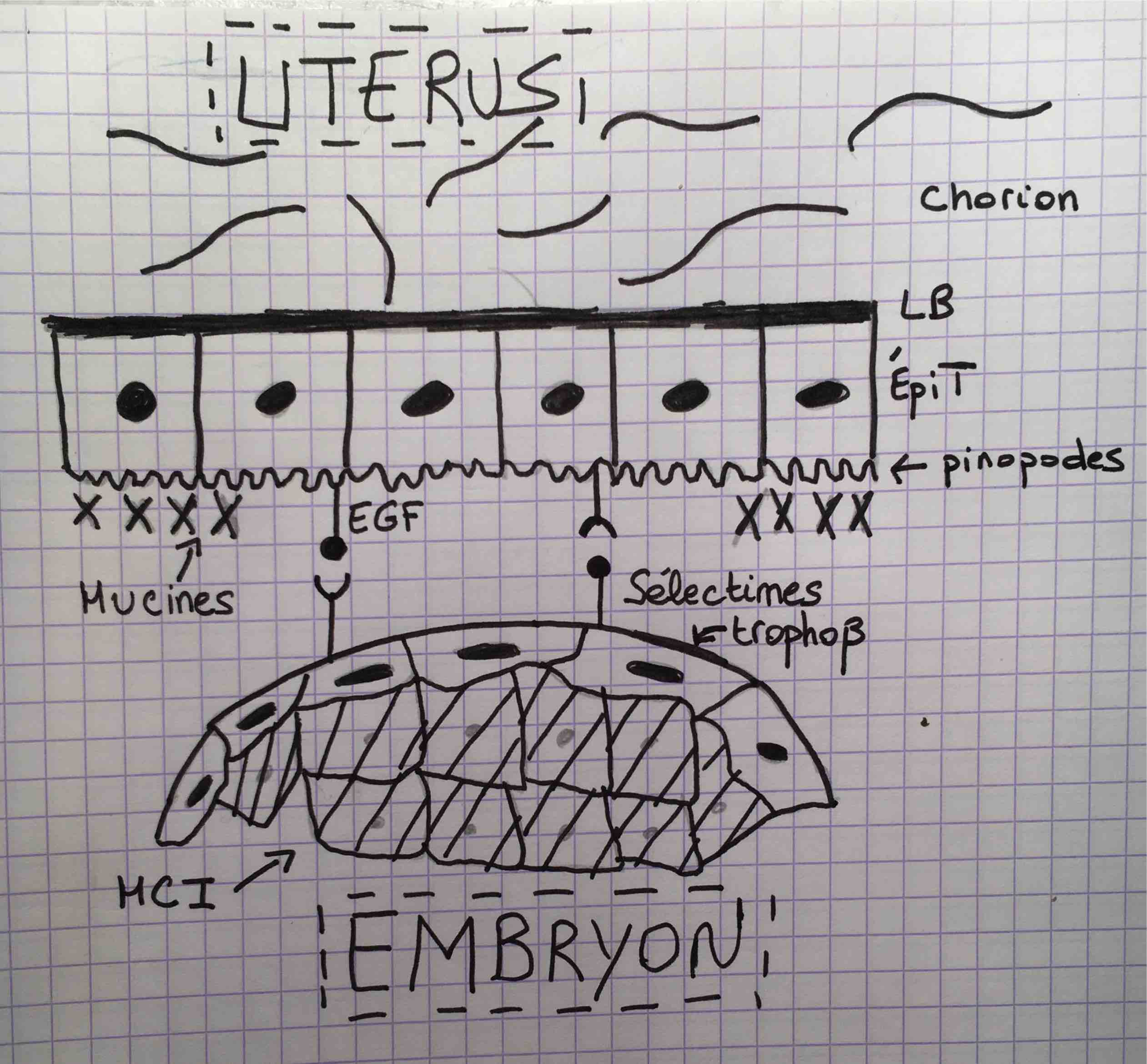 2 choses différentes!!Donc les sélectines vont être des petites molécules dont le ligand est trophoblastique et le récepteur sur l'endomètre, qui vont permettre un point d'adhérence à l'oeuf sur l'endomètre.