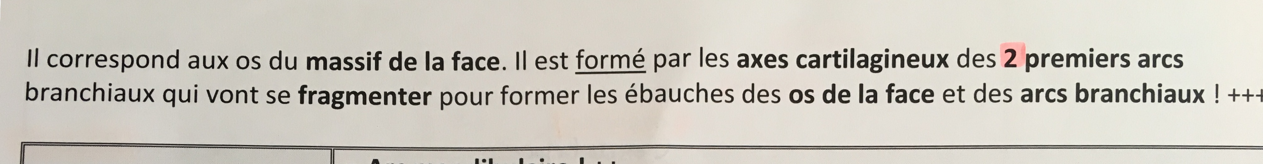 Je ne comprends pas cette partie .. on dit qu’il est formé des arc branchiaux, ensuite on dit qu’il formera les arc branchiaux ..