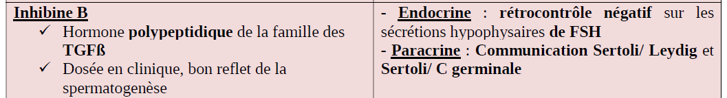 Salut ! Je te mets la partie de la fiche sur l'inhibine B. Mais c'est la même chose que ce qu'il y a écrit sur la ronéo.