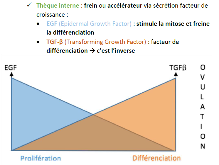 Et ensuite, pour EGF et TGFB, ça veut dire que les 2 sont sécrétés par la tchèque interne et agissent sur les cellules de la Granulosa et du coup quand celle-ci est complètement différenciée elle a plus besoin de récepteurs à TGFB c'est ça ? Mais du coup on quand même EGF ?