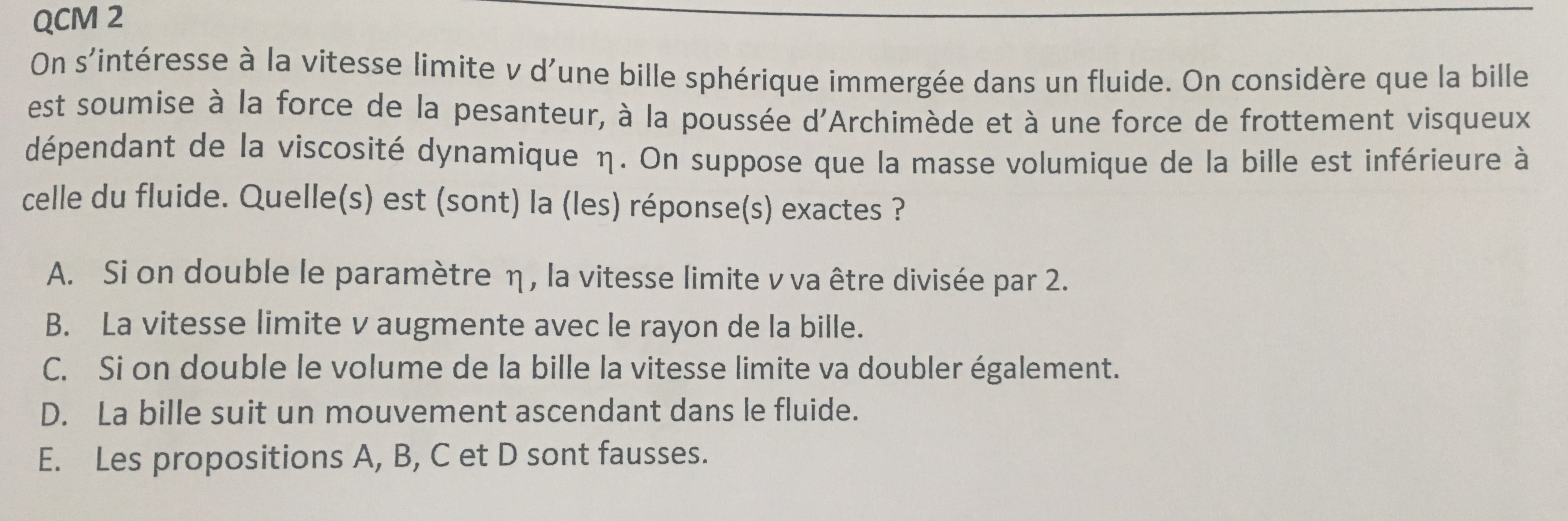 Bonjour, pour ce qcm j’ai compris les ABD mais là C... je vois pas pourquoi le volume et la vitesse limite ne sont pas proportionnelles ?