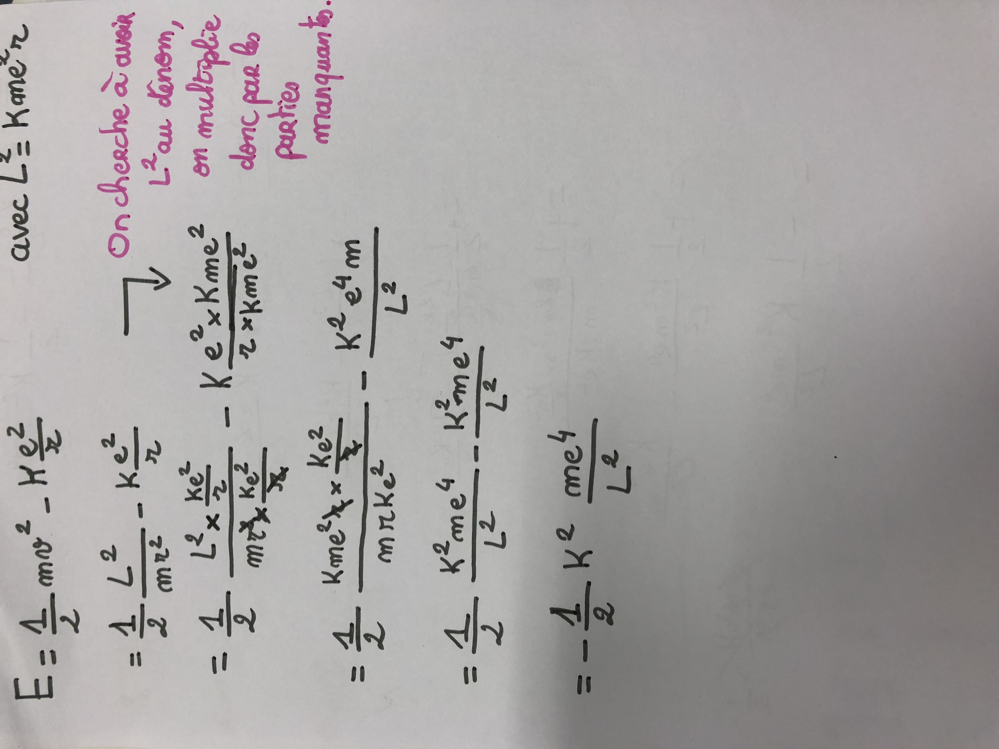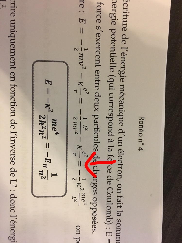 Pour obtenir L2 il fallait donc multiplier ton dénominateur par κe2/r, et pour conserver l'égalité, on multiplie le numérateur par la même valeur.