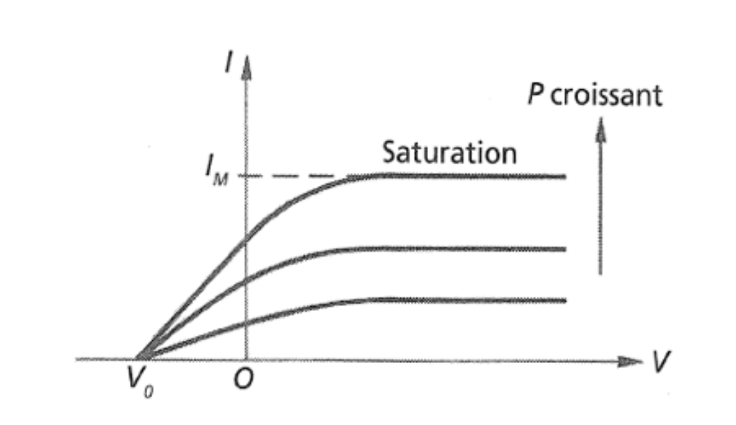 Concernant la seconde partie du QCM : Pour comprendre cela il suffit de regarder le schéma qui étudie les variations du courant en fonction de la tension :