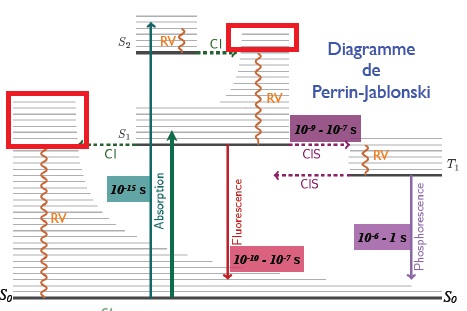 --> j'ai cru comprendre que T1 est considéré comme un niveau d'énergie au même titre que S0 , S1 ,S2 sauf que les e- vont y rester + longtemps , vous pouvez confimer ?