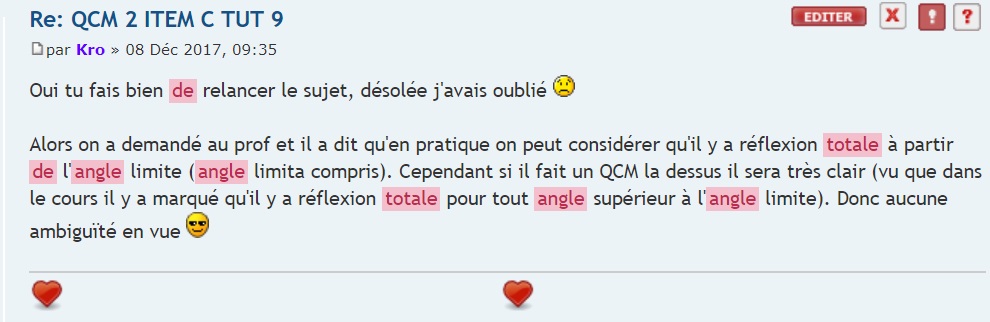 j'ai vu pas mal de sujet a propos du fait qu'il y avait des ambiguités quand l'angle était= a téta L etc... du coup j'avais considéré que la réponse B était fausse puisque bon dans la ronéo c'est écrit strictement inférieur mais au dela de ca je comprend pas pourquoi ils comptent pas la C juste parceque pour le coup avec un angle de 60 degres 'il n'y a pas trop d'ambiguité :D