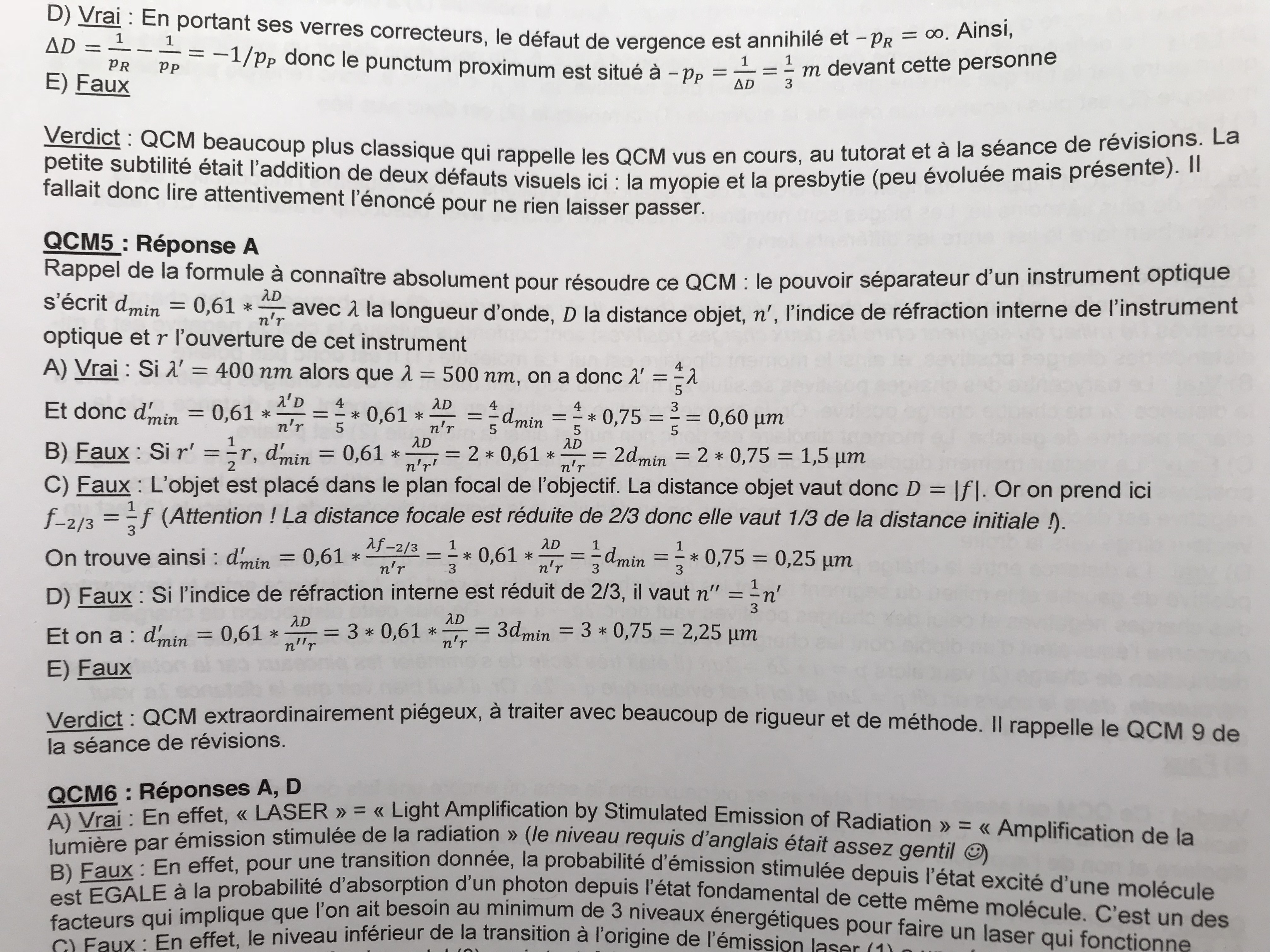Concernant l'item D :La réfraction interne du microscope ça correspond à son indice optique noté n' dans la formule!