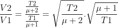 2. Utiliser la formule de la célérité d'une corde On veut ici savoir combien de fois la vitesse V2 (notée V' dans l'énoncé) de la deuxième corde est grande ou petite par rapport à la vitesse V1 (notée V dans l'énoncé) de la première corde. On doit donc faire un rapport entre les deux vitesses :