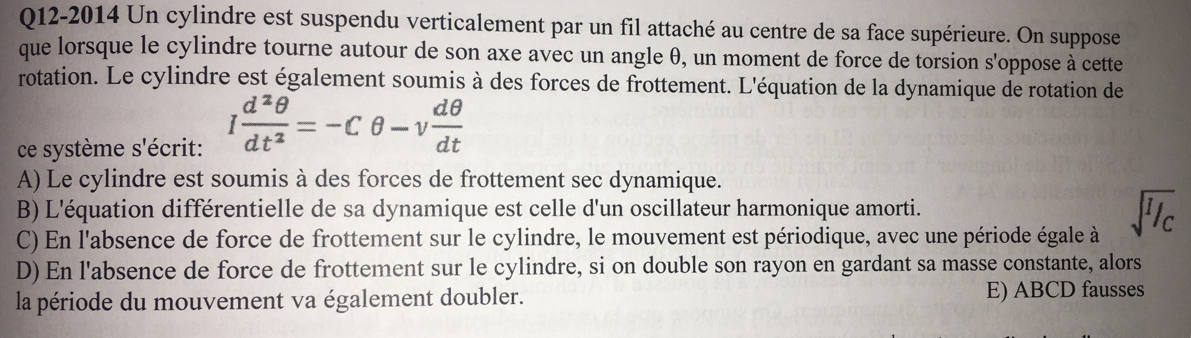Item B : En effet, toujours en regardant l'équation, il y a bien des forces de frottements, c'est typiquement la forme d'une équation d'oscillateur amorti
