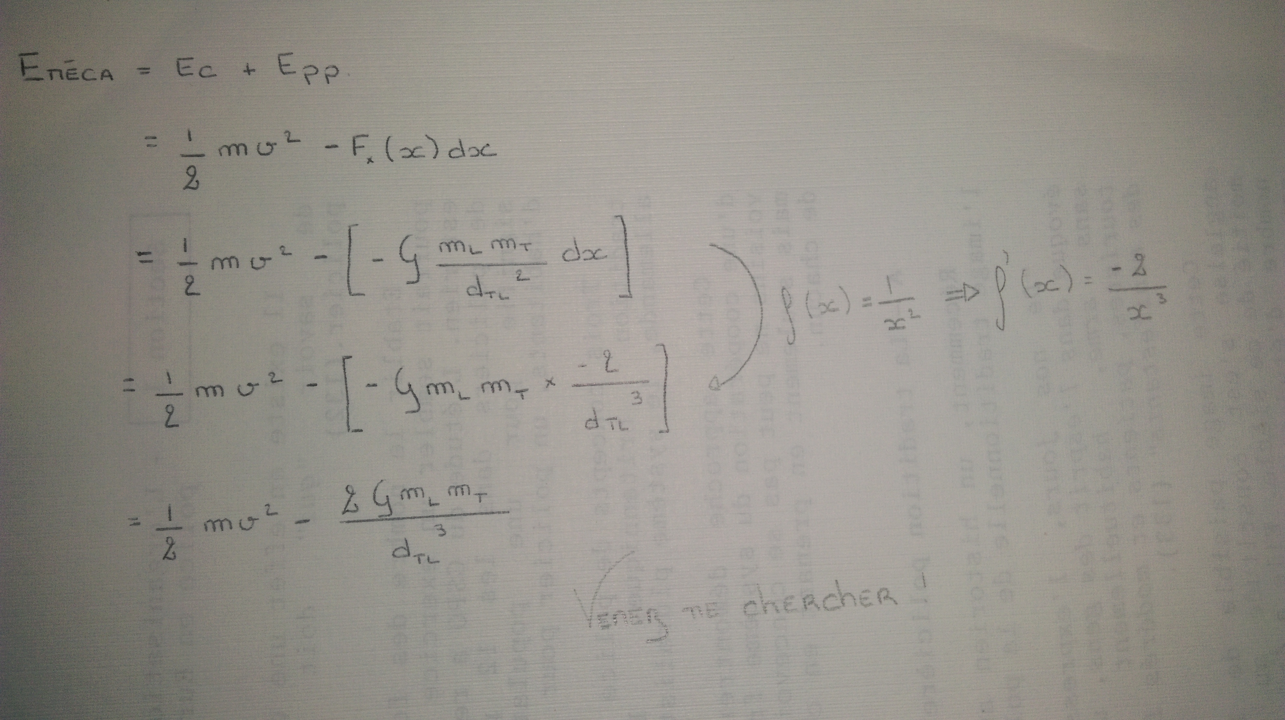 On note W le travail à fournir pour aller de +oo jusqu'à amener la Lune à une distance r de la Terre.