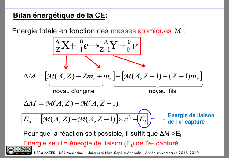 - on a une capture électronique et on nous demande l’energie cinétique du neutrino émis = Ed = [M(A,Z) - M(A,Z-1)]x c2 - El